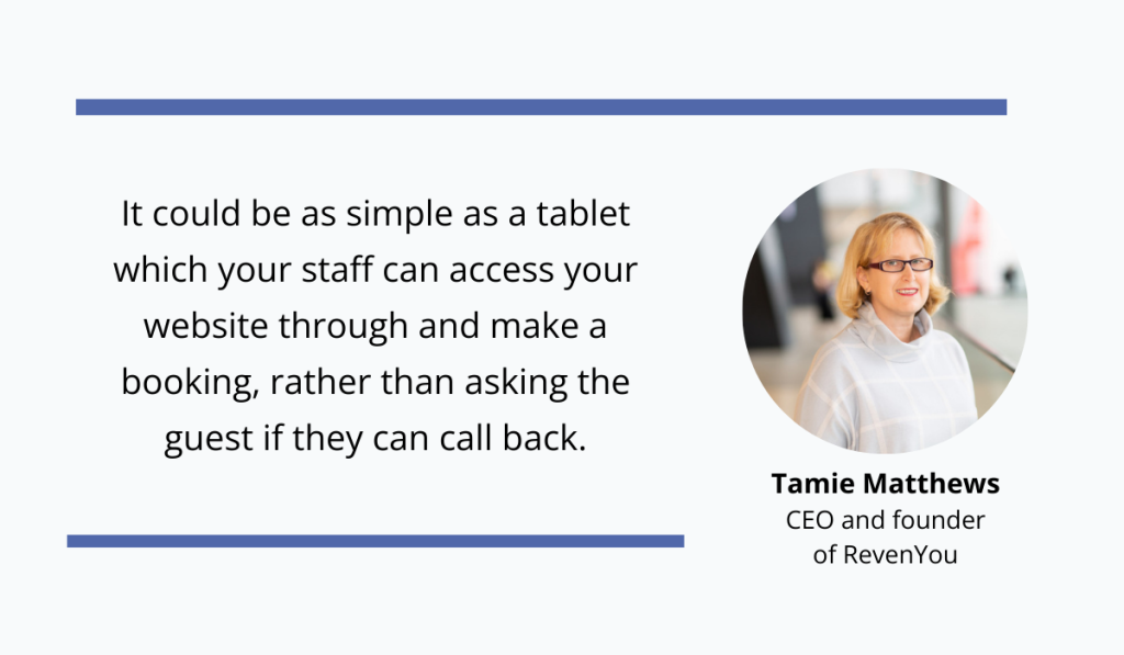 On top of that, Tamie Matthews, CEO and founder of the revenue management company RevenYou, advises providing your staff with a tablet for further streamlining reservations.
