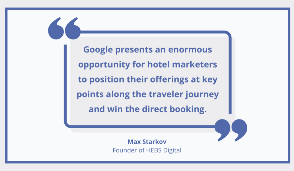 Max Starkov, founder of the marketing solutions provider HEBS Digital, explains that over 50% of direct bookings are, in fact, direct referrals from Google.