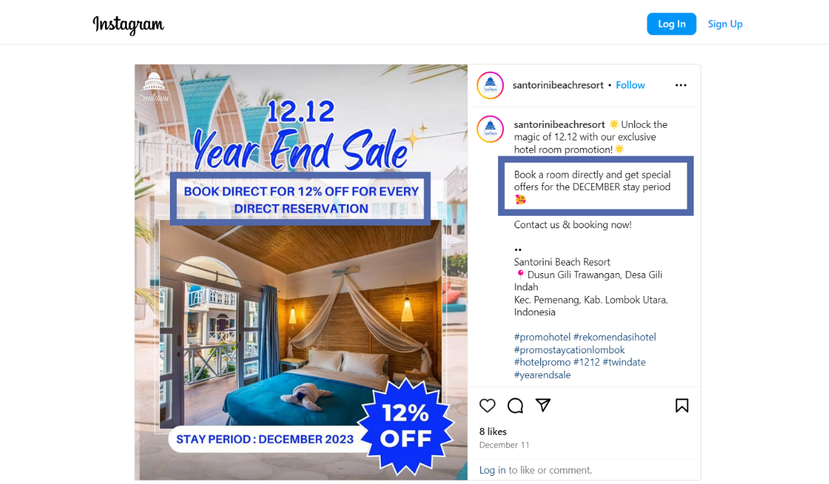 Take a look at how the Santorini Beach Resort in Indonesia does it through social media: