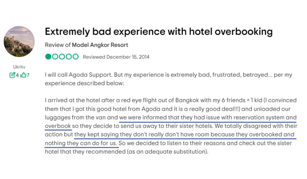 That way, you never have to worry about accidentally overbooking your hotel and ending up in a situation that’s uncomfortable and inconvenient for both you and your guests, like in the example below.