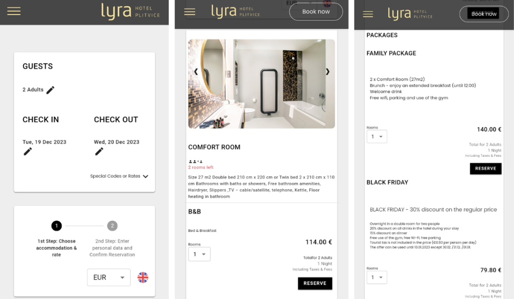 All of this—plus the fact that the entire booking process takes place on your hotel’s website without any redirections—contributes to a seamless direct booking experience.