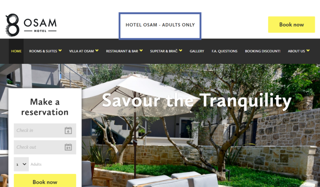 Let’s say one of the main selling points of your hotel is the fact that it is an adults-only hotel.