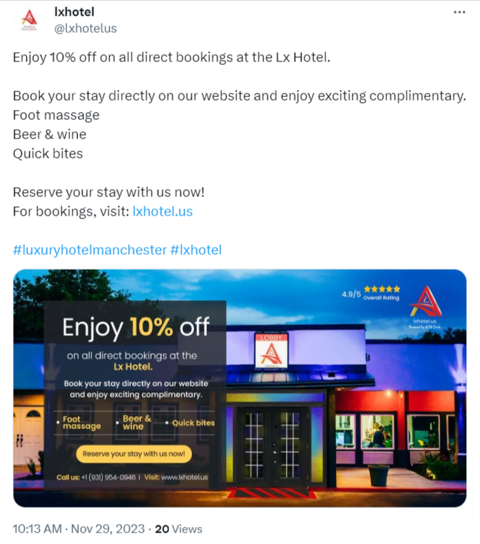 Another thing you can do to reduce dependence on third-party sites is to incentivize direct bookings with initiatives such as discounts or complimentary amenities for those who book a room through your website.