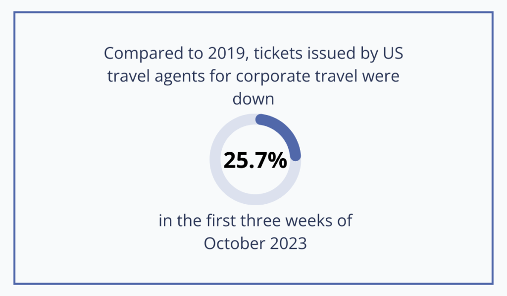 For starters, when we compare the post-pandemic recovery of leisure vs business travel, the latter is experiencing considerably slower growth.