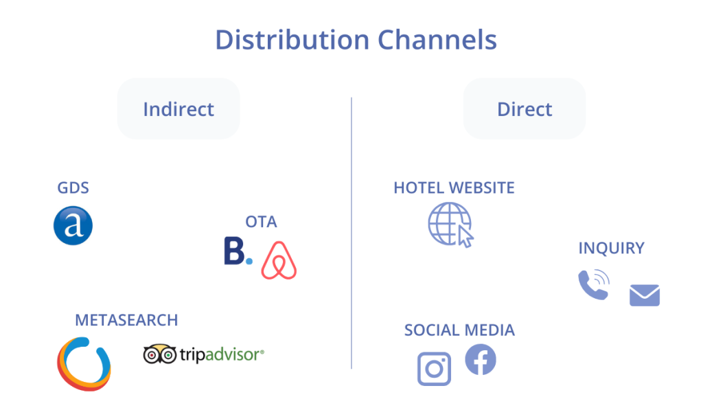 This includes your hotel’s official website, online travel agents, metasearch engines, and global distribution systems (we’ll delve into these in greater detail later), but also phone, email, magazine ads, and more.