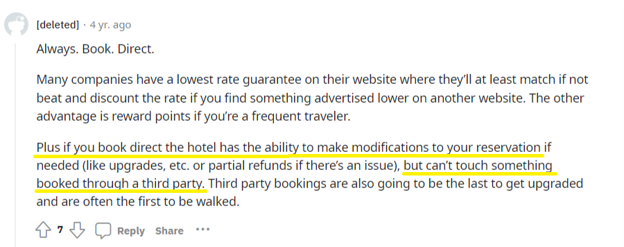 Direct bookings also offer greater flexibility and lead to a better customer experience.