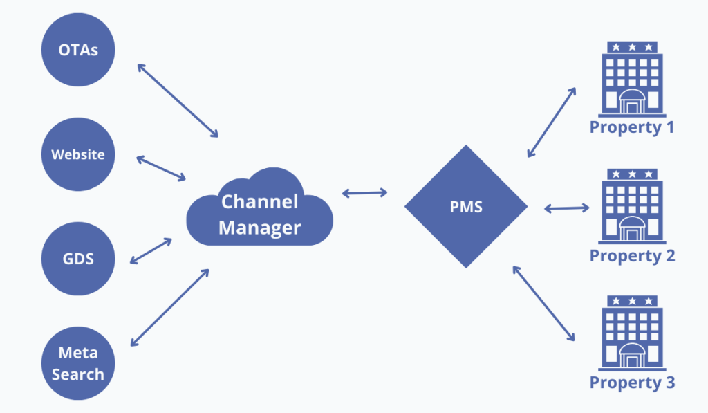 Essentially, channel managers operate through a two-way integration, acting as connectors between various distribution platforms and your property management system (PMS).