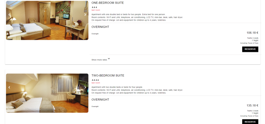 Once a room is selected, users are promptly directed to the checkout page, without redirection to a third-party site, where they enter their personal information, and voilà—the room is booked.