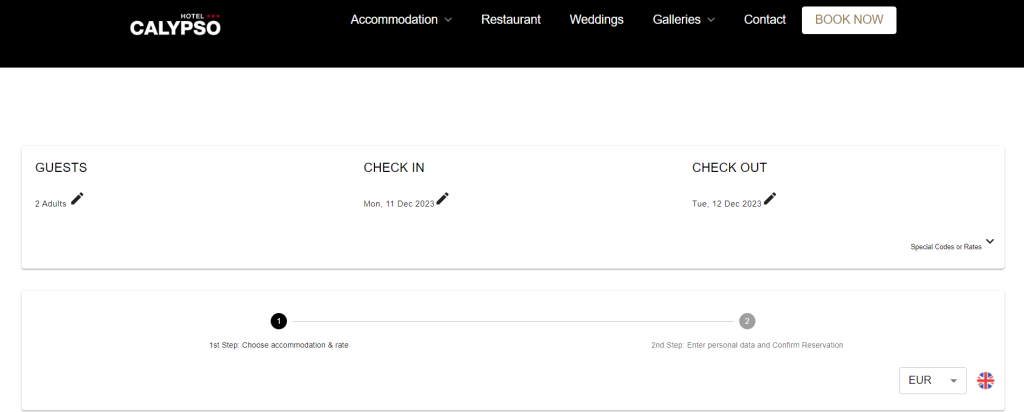 Once a room is selected, users are promptly directed to the checkout page, without redirection to a third-party site, where they enter their personal information, and voilà—the room is booked.