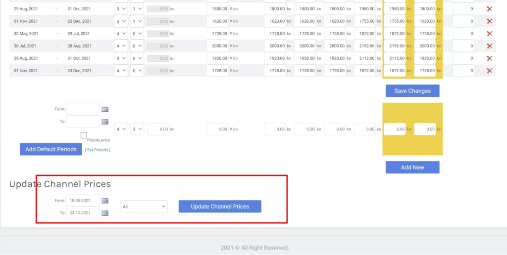As you can see below, if you’re using the WebBookingPro CRS, all you need to do is change your prices and simply hit “Update Channel Prices”.
