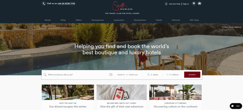 Mr & Mrs Smith is a boutique hotel booking platform that is focused on helping its customers find the best luxury accommodation.
