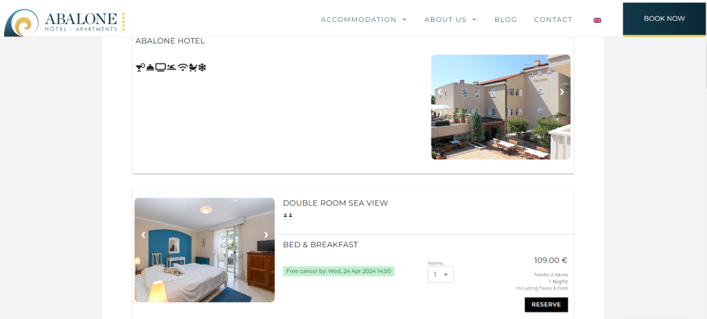 As you can see in the image above, the room booking process directly on the website of Abalone Hotel, which uses WebBookingPro, takes only a couple of steps.