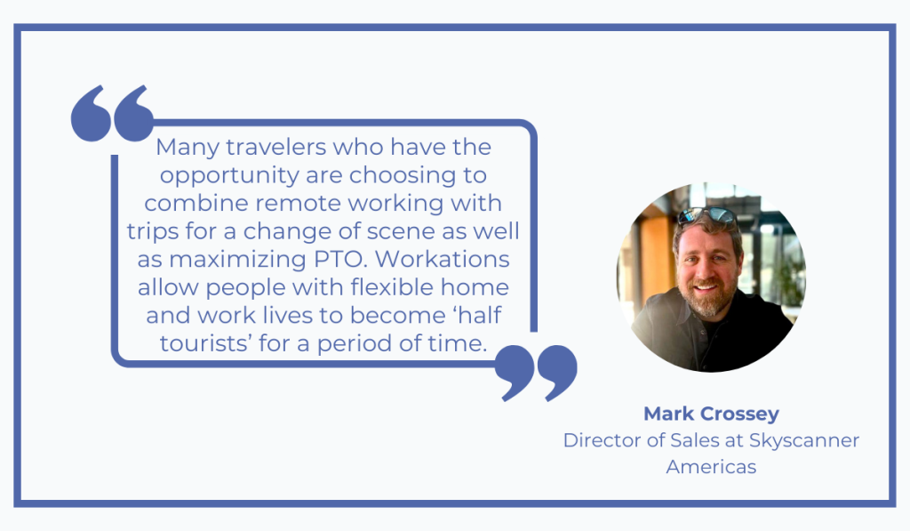 Mark Crossey, a travel expert from Skyscanner, notes the increasing popularity of “workations.”