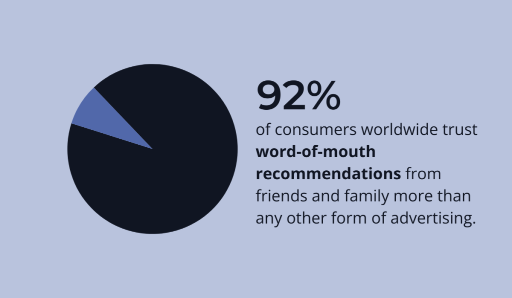 Did you know that 92% of global consumers take recommendations from friends and family more seriously than all other forms of advertising?