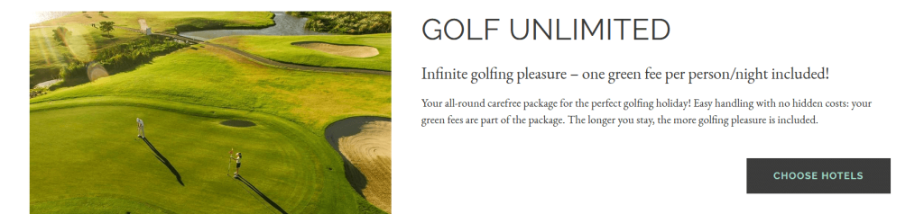 Meanwhile, Falkensteiner Hotels skillfully capitalize on their golf course amenities by promoting packages with free green passes for daily golf.