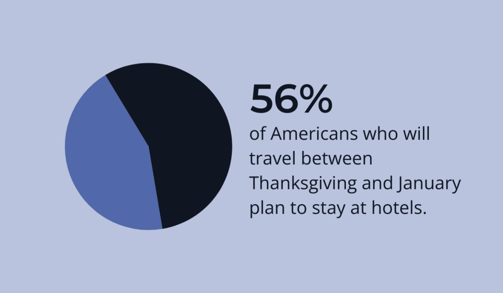 Just take a look at this year’s Deloitte holiday survey. It shows that almost half of Americans plan to travel between Thanksgiving and mid-January, with 56% opting for hotel stays despite higher prices.