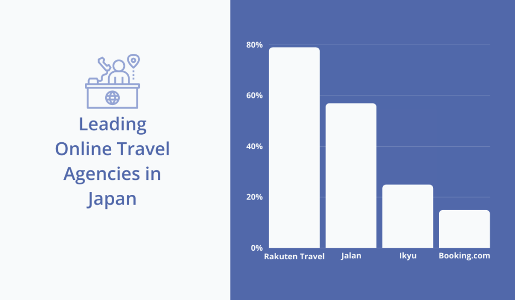 If we look at the popular online travel agencies in Japan, for example, Booking.com plays catch-up, with Ikyu, Jalan, and Rakuten Travel.