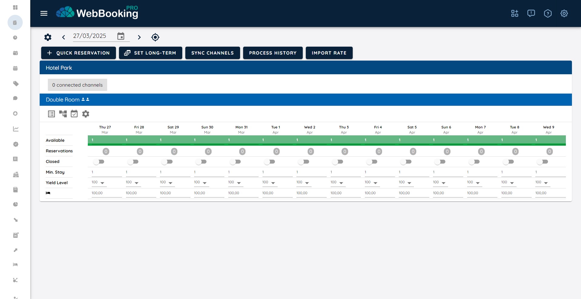 - Price for Room has been set to 100 EUR for all nights for whole current year