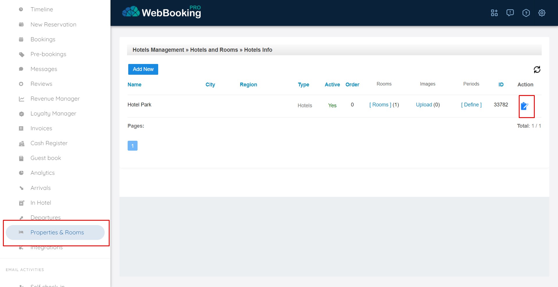 You can see and modify general information about the property with “Edit” icon at the end of line.