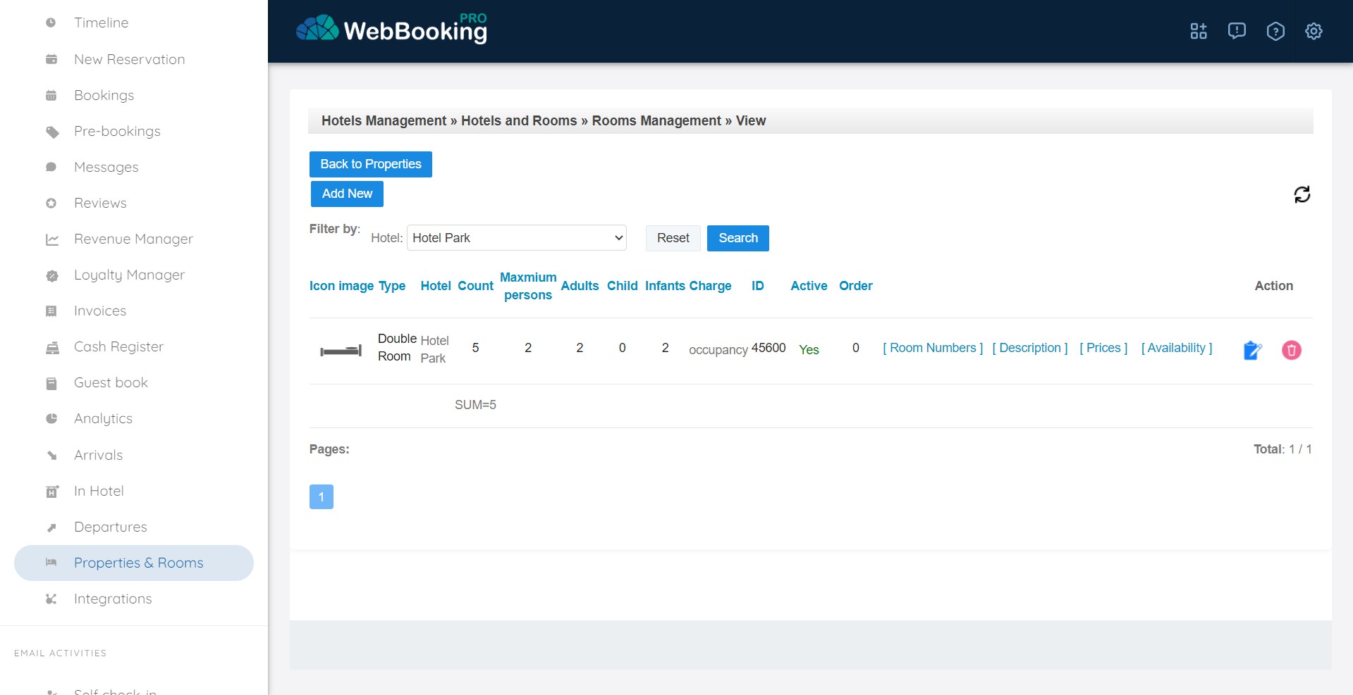 To modify existing rooms click on Edit icon on the end of every Room line.