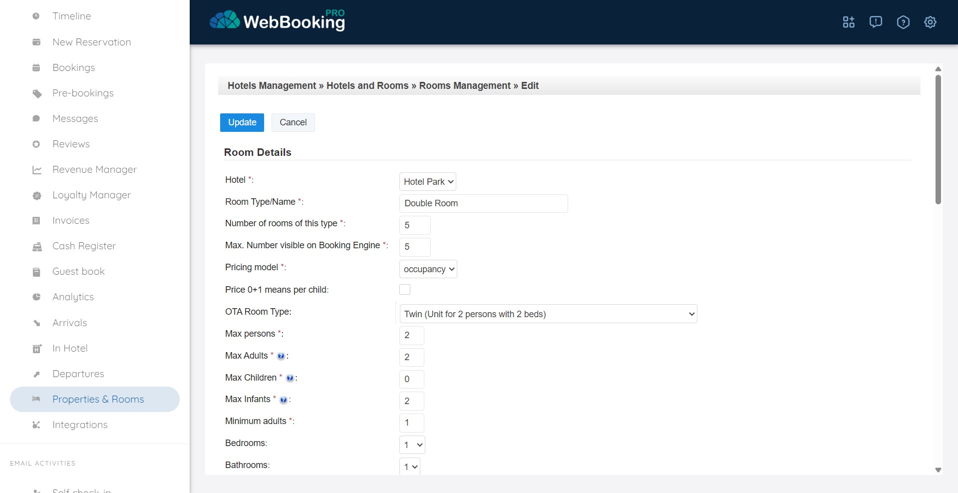 For left menu choose Properties & Rooms – “[Rooms]” to set up Rooms for your property.